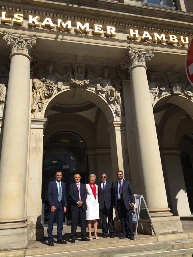 Με σκοπό να προωθήσει νέες προοπτικές και καινοτόμες δραστηριότητες, που μπορούν να συνεισφέρουν στην εξέλιξη της εμπορικής, βιομηχανικής και ναυπηγοεπισκευαστικής επιχειρηματικότητας του Πειραιά, αλλά και εν γένει στην εθνική μας οικονομία, αντιπροσωπεία του Εμπορικού και Βιομηχανικού Επιμελητηρίου Πειραιώς, με επικεφαλής τον Πρόεδρο, κ. Β. Κορκίδη, τον Πρόεδρο του ΠΣΕΠΕ κ. Νικόλαο Μαυρίκο ως Β’ Αντιπρόεδρο του ΕΒΕΠ και τον Πρόεδρο του εξαγωγικού τμήματος, κ. Δ. Λεμονάκη, πραγματοποίησε συναντήσεις εργασίας με τον Prof. Dr. Schmidt-Trenz, επικεφαλής του Εμπορικού Επιμελητηρίου του Αμβούργου, με τους εκπροσώπους του Ομοσπονδιακού Υπουργείου Οικονομικής Συνεργασίας και Ανάπτυξης της Γερμανίας, κ. Ο. Kentzler και κα G. Stock, καθώς και στελέχη της διοίκησης του Λιμένος Αμβούργου. Σε όλες τις επίσημες συναντήσεις, παρευρέθηκε ο Γενικός Πρόξενος της Ελλάδας στο Αμβούργο, κ. Γ. Αρναούτης και ο κ. Δ. Σωπίκης, εκπρόσωπος της Ελληνογερμανικής Συνέλευσης.